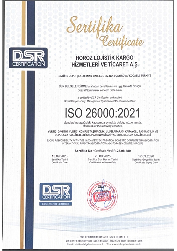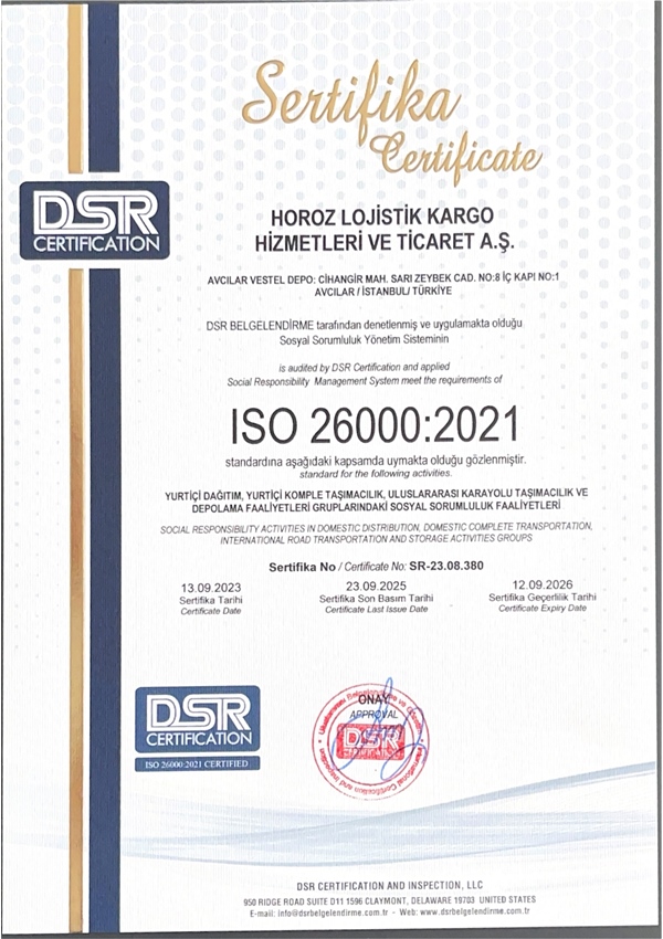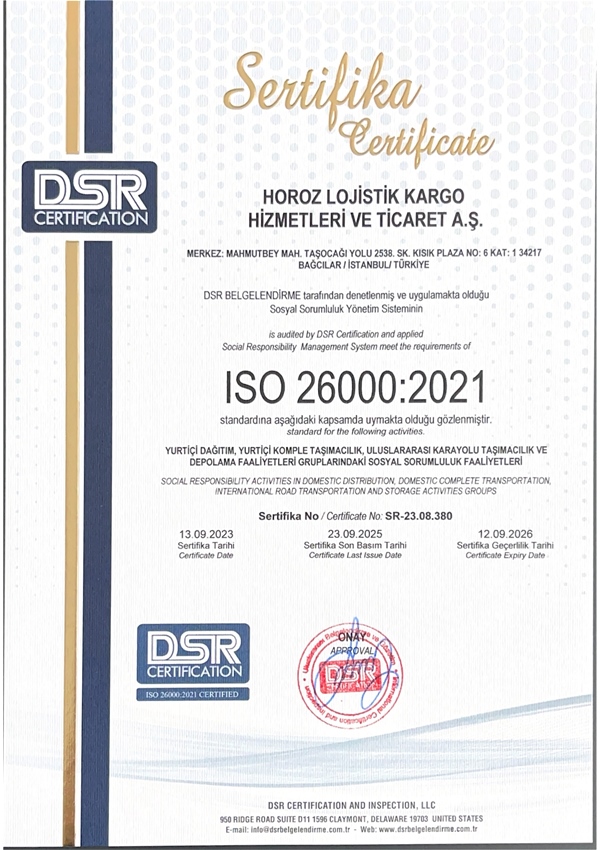 Horoz Lojistik iş sağlığı ve güvenliği yönünden üst yönetim dahil olmak üzere tüm çalışanlarında gereken bilincin oluşturulması amacı ile iş kazalarını ve meslek hastalıklarını önlemeye yönelik gerekli tüm kaynakları sağlayarak hareket etmeyi hedeflemektedir.