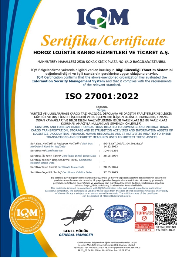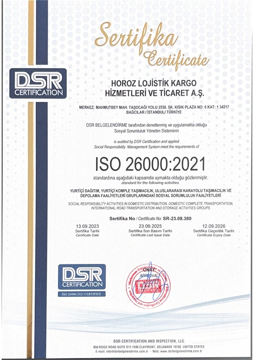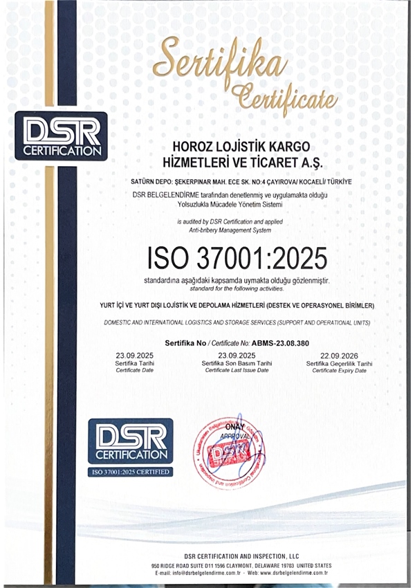 Horoz Lojistik Müşteri Şikâyeti ve Yönetimi süreci, ISO 9001:2015 Kalite Yönetim Sisteminin müşteri odaklılık ilkesiyle başlamış, ISO 10002:2018 Müşteri Memnuniyeti-Şikayetlerin Ele Alınması standardı kapsamında detaylı olarak yürütülmektedir. Aynı zamanda ISO 18295:2017 Müşteri İletişim Merkezi standarttı çerçevesinde yapılan çalışmalarla da süreç desteklenmektedir.