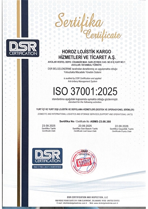 Horoz Lojistik Kargo Hizmetleri ve Tic. A.Ş’nin etik kurallar, yönetmelikler, prosedürler ve diğer düzenlemeler, faaliyetlerin yasalara uygun, doğru, adil ve dürüst bir şekilde yürütülmesini destekler nitelikte olup, Topluluğun tüm paydaşlarının haklarının korunmasını sağlamak amacıyla rüşvet ve yolsuzluk ile mücadele konusunda çok daha hassas bir tavır sergilenmektedir. Yolsuzluk ve Rüşvet ile Mücadele Politikası da bu konuya verilen önemin bir gereği olarak hayata geçirilmiştir.